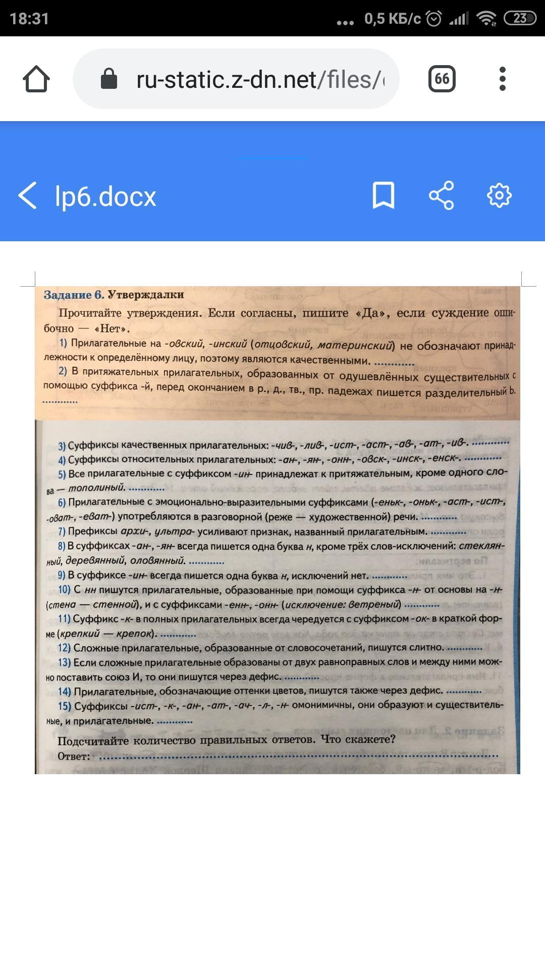 Помогите ответить на вопрос 6.